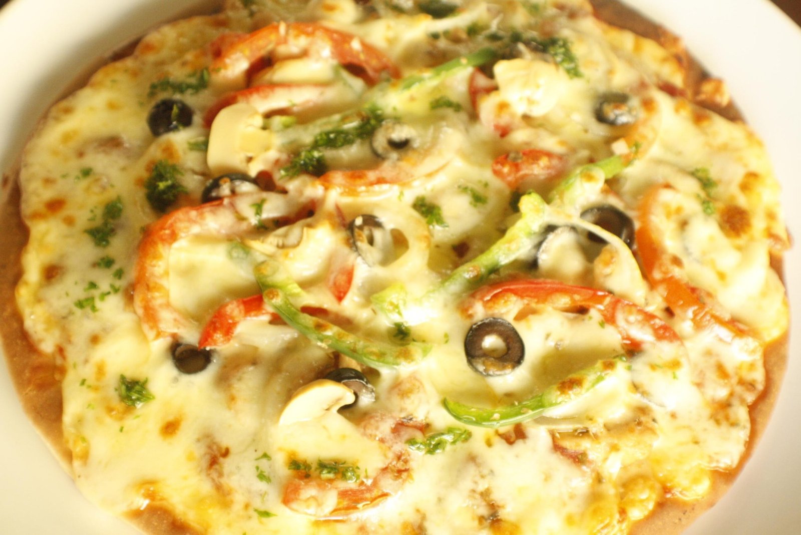 Capsicum, onions, olives, mushrooms & cheese